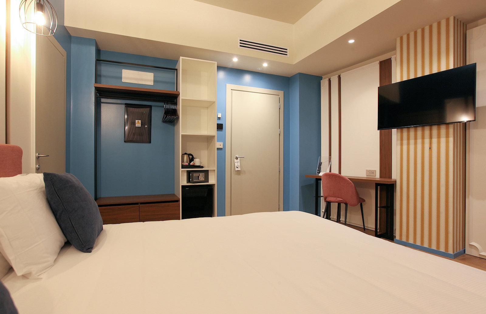 Air-conditioned and comfortable, it comes with a private bathroom with a shower and hairdryer, flat-screen TV with satellite channels, wardrobe, desk, USB-C port, mini-fridge, safe, and electric kettle.